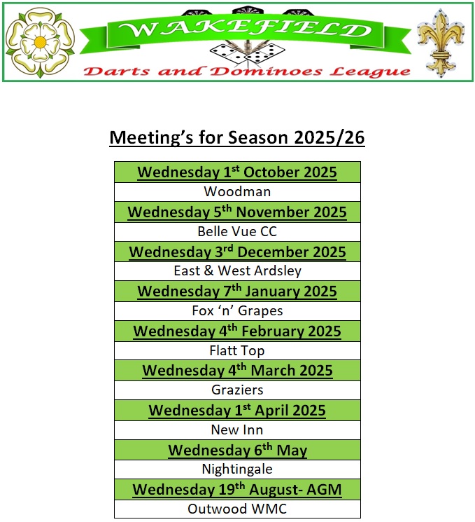 The official site for Wakefield Darts and Dominoes Monday Night League