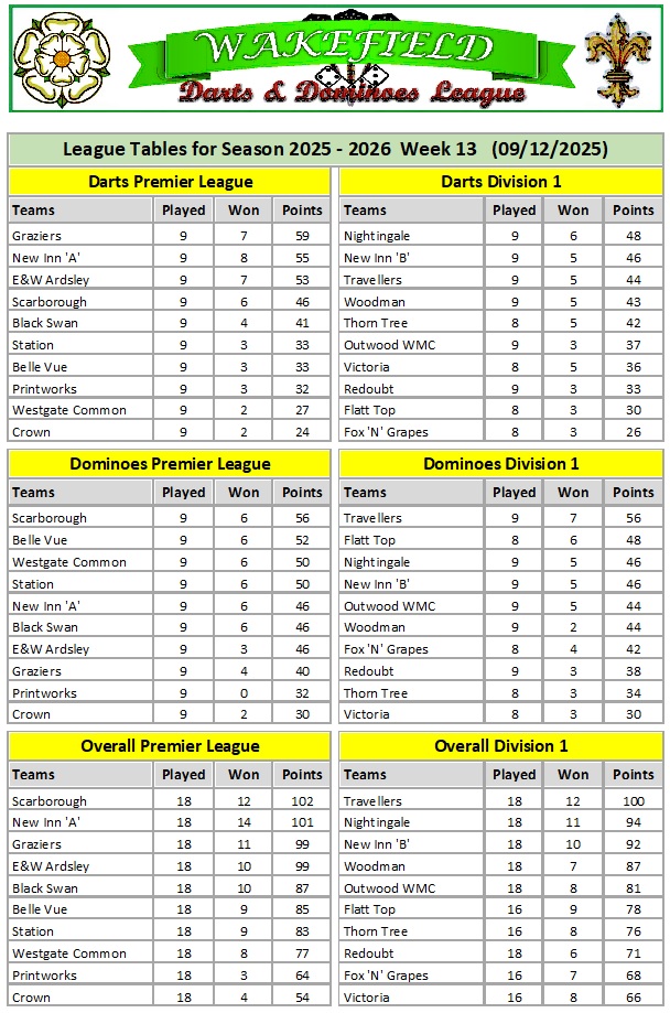 The official site for Wakefield Darts and Dominoes Monday Night League